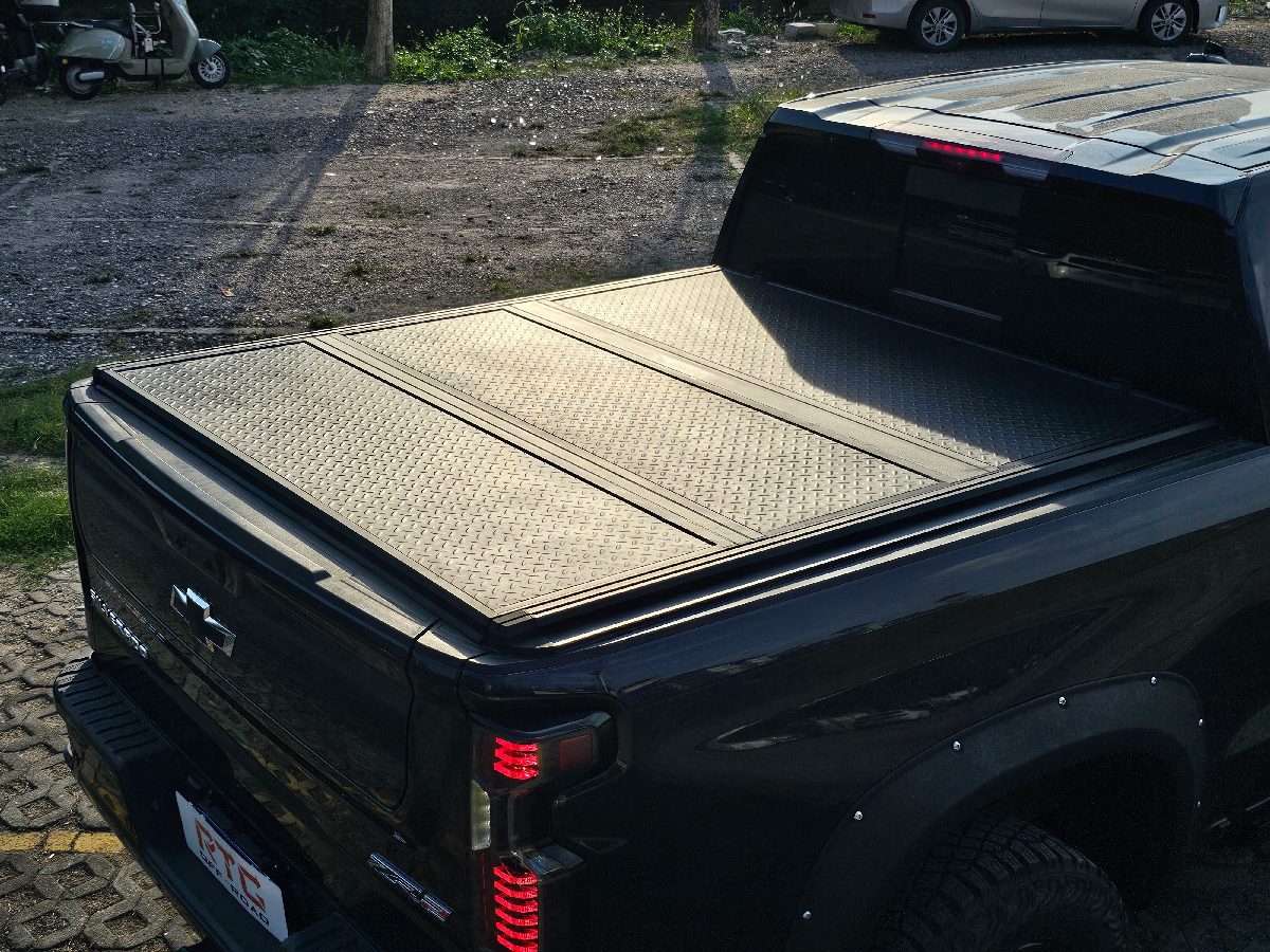 This all-metal truck bed cover uses heavy-duty aluminum slats that retract into a low-profile aluminum canister. Its electric motor lets you open/close it with a button on two wireless remotes – no manual effort needed. Need to stop halfway? Just tap any remote button to trigger an electromagnetic brake, freezing the cover mid-movement for partial bed access. The sleek, rugged design keeps gear secure without bulky hardware. Perfect for hauling oversized items or quick stops where full coverage isn’t practical. Durable enough for tough jobs, smart enough to adapt on the fly – just click and let the system handle the rest.