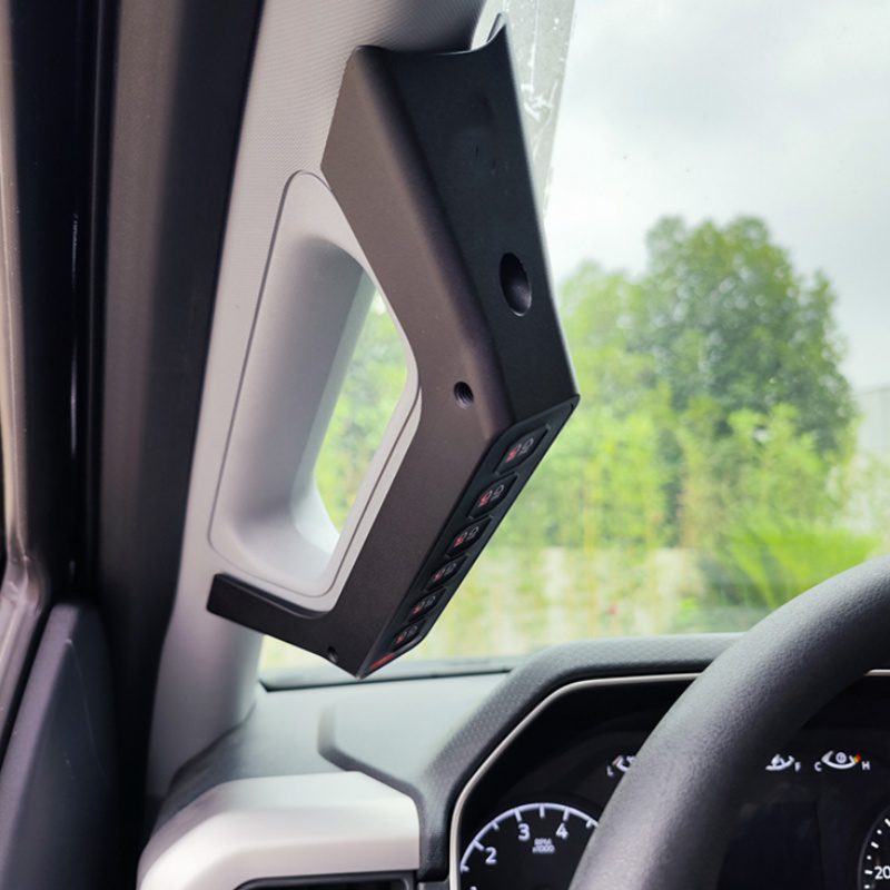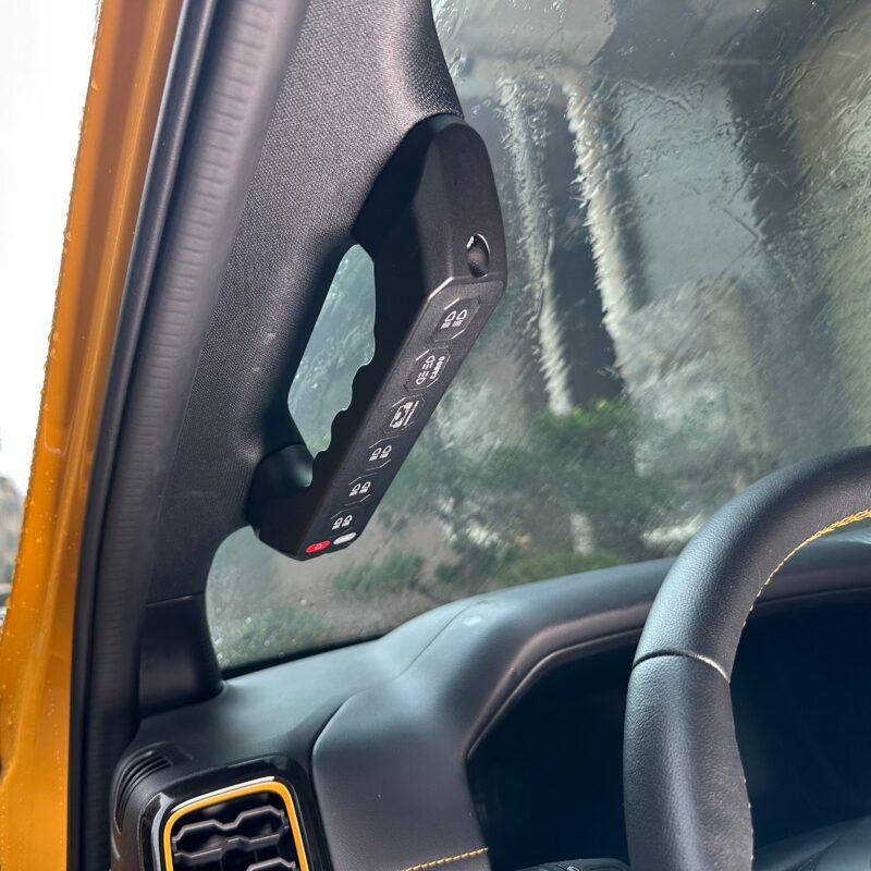 This A-pillar grab handle switch panel combines rugged durability with advanced electrical control. The die-cast aluminum alloy housing with sand-textured paint ensures corrosion resistance and a factory-matched finish, while its plug-and-play design enables seamless installation