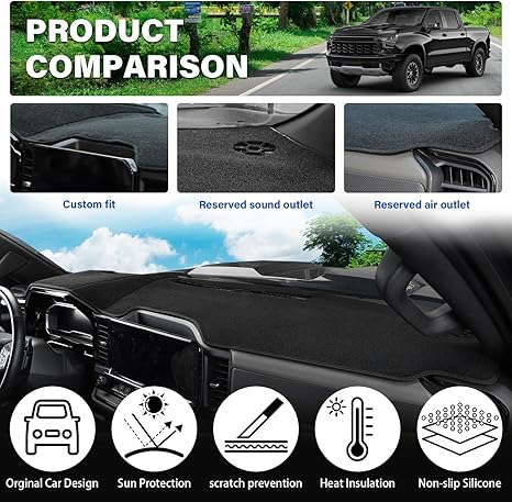 5.Premium flannel Material: Our dashboard cover for Chevy Silverado/ GMC Sierra made of high-quality flannel. Soft, breathable and odorless. All edges of the car sunshade mat are carefully hemmed and stitched, making the cover comfortable to touch. Its surface is not completely smooth, so items will not fall off