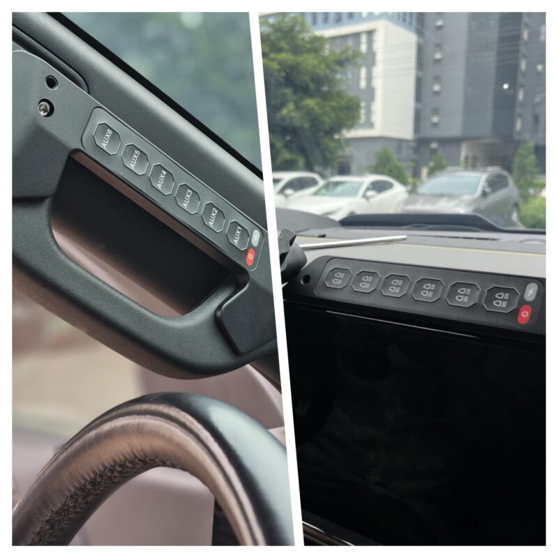 High-Capacity Power Management: Operates on 12V-24V systems with a total current capacity of 80A (60A continuous). Each of the 6 independent circuits supports up to 30A, ideal for high-power accessories like LED light bars, winches, or auxiliary lighting. Intelligent Control System: Features dual-mode wiring (ACC/battery direct) with a centralized control box for safe power source switching. Red/green backlit buttons provide clear operational status (ON/OFF) in all conditions. Smart Functionality: Programmable single-button flashing mode (all lights or individual circuits) for emergency signaling or off-road coordination. Integrated Type-C ensures rapid device charging.